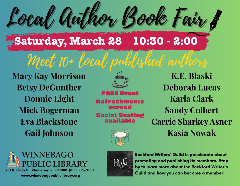 Meet 10+ local published authors, view their books, and buy a signed copy.